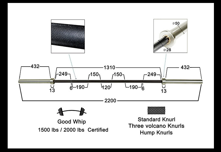 Được chứng nhận 1500 lbs/2000 lbs: Được chứng nhận từ 1500 đến 2000 pound để đảm bảo khả năng chịu tải của thanh tạ.